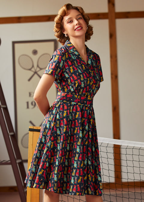 Black Hot Pink Embroidered Poodle Swing Skirt