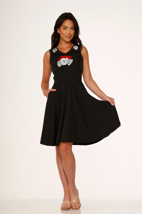 Rose Skulls Embroidered Swing Dress