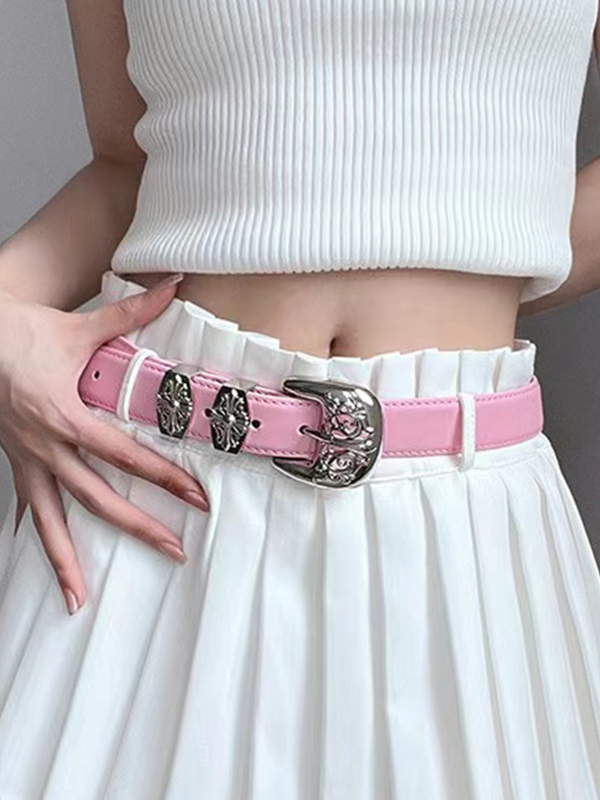 Engraved Cutout Cross Buckle Belt