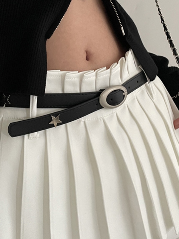 Black Star Embellished Thin Buckle Belt