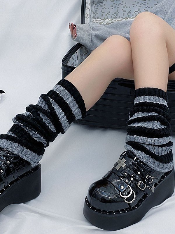 Vintage Striped Ribbed Knit Leg Warmer