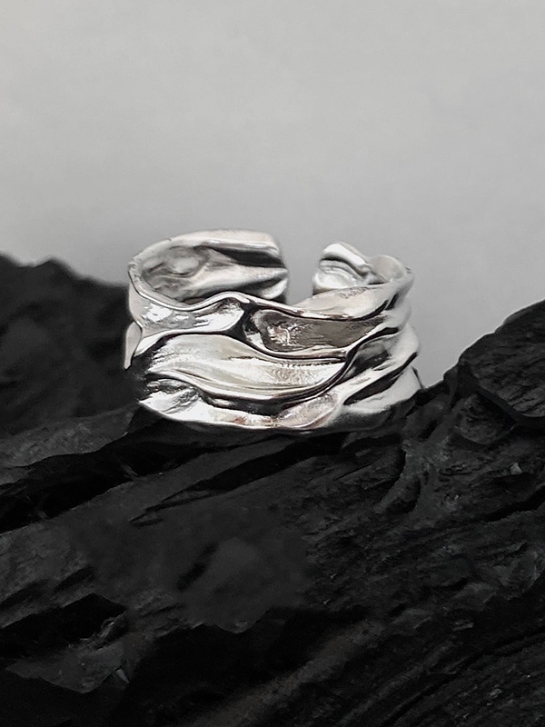 Men’s 2Pcs Silver Textured Cuff Ring