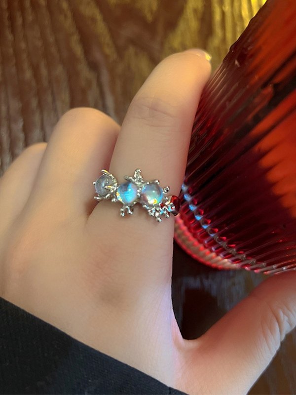 Rhinestone Cosmos Planet Charm Cuff Ring
