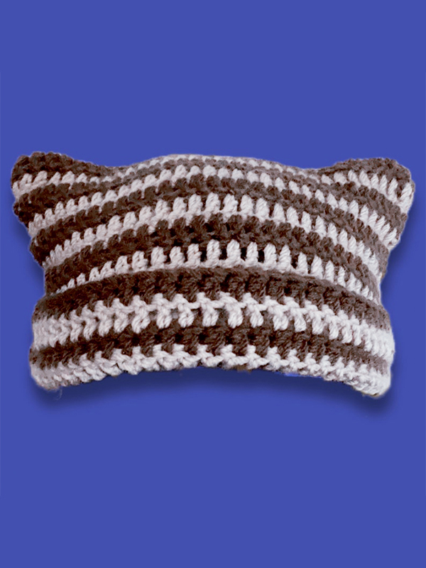 Hand Made Horn Detail Striped Knitted Beanie Hat