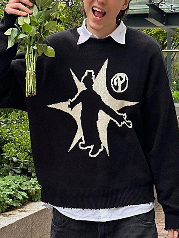 Men’s Knit Street Print Loose Sweater