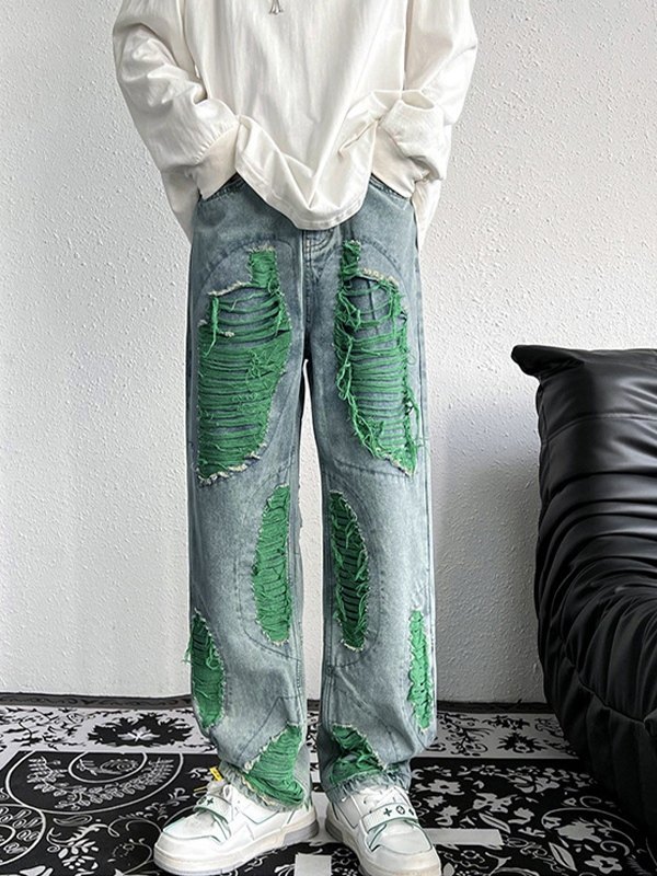 Men’s Firework Rhinestone Print Ripped Straight Leg Jeans