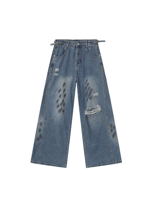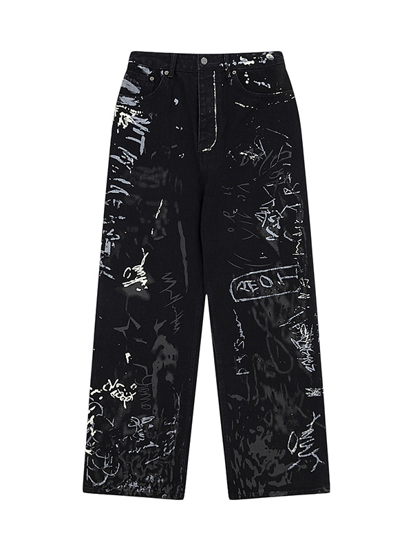 Vintage Yellow Mud Letter Loose Straight Jeans