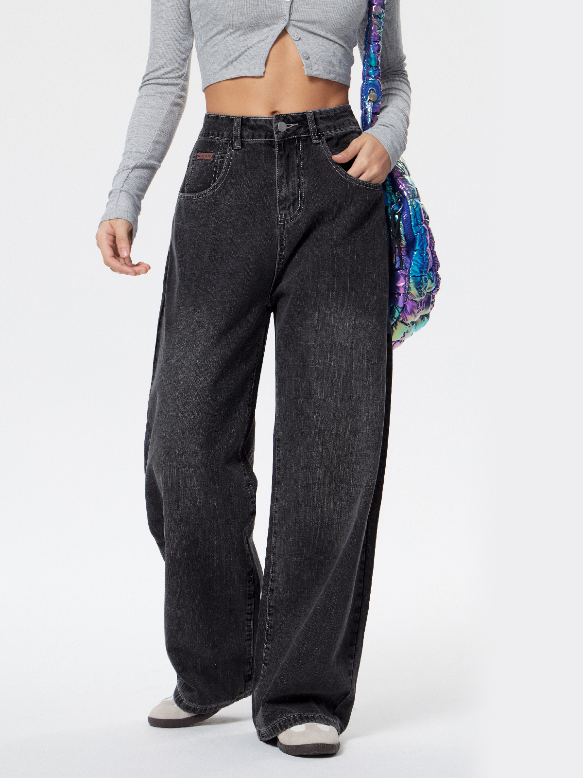 Black and grey velvet vintage wide leg jeans