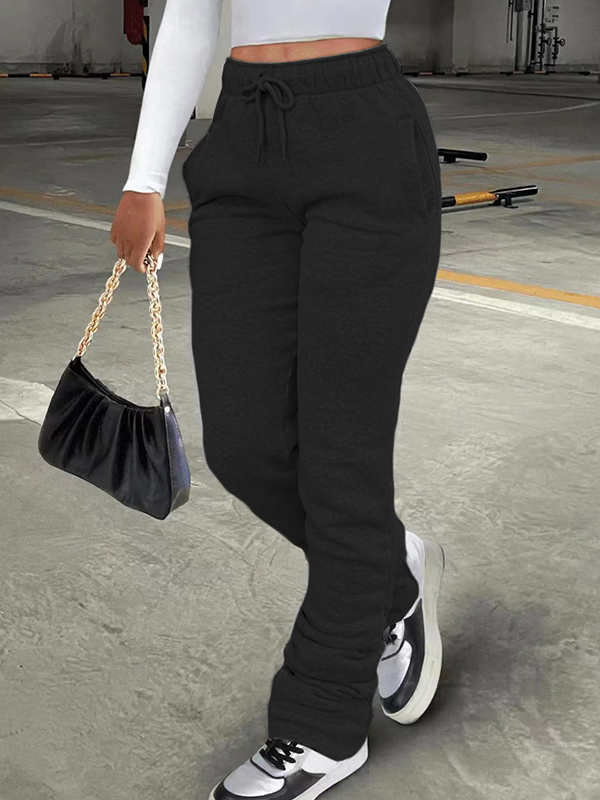 Solid Drawstring Stacked Pants