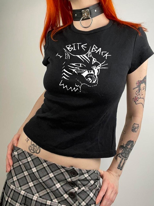 Graffiti Print Cropped Short Sleeve Tee