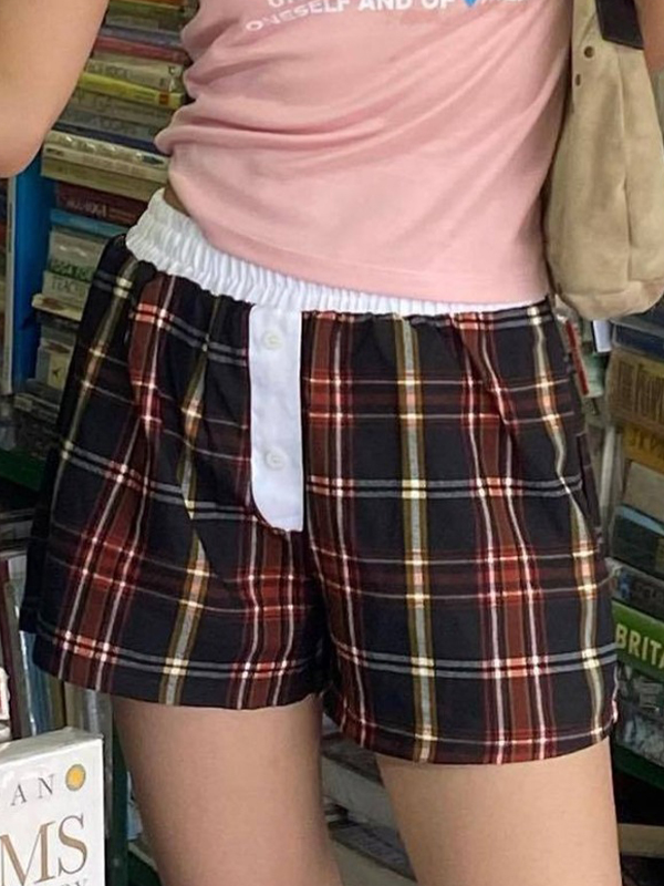 Vintage Plaid Print Shorts