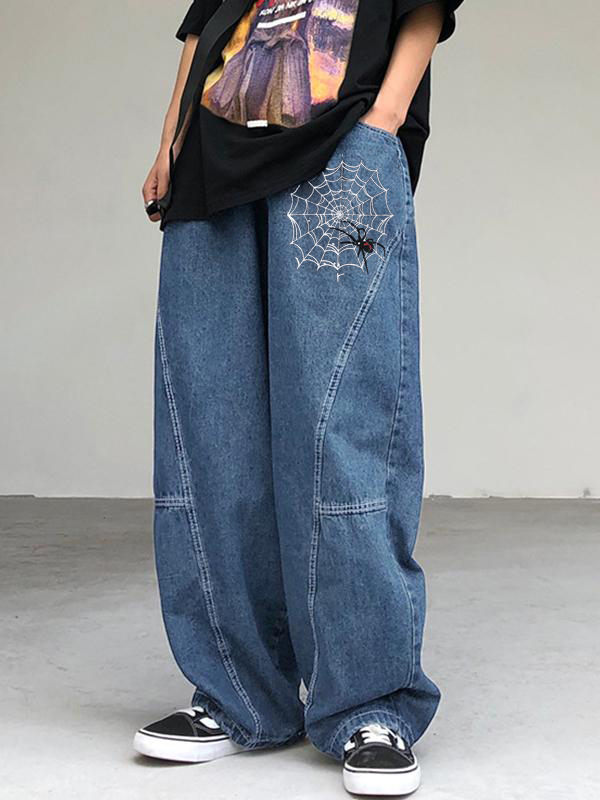 Men’s Spider Print Loose Jeans