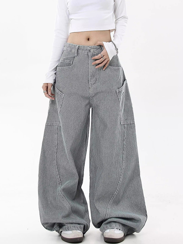 American Retro Striped Scimitar Banana Boyfriend Jeans