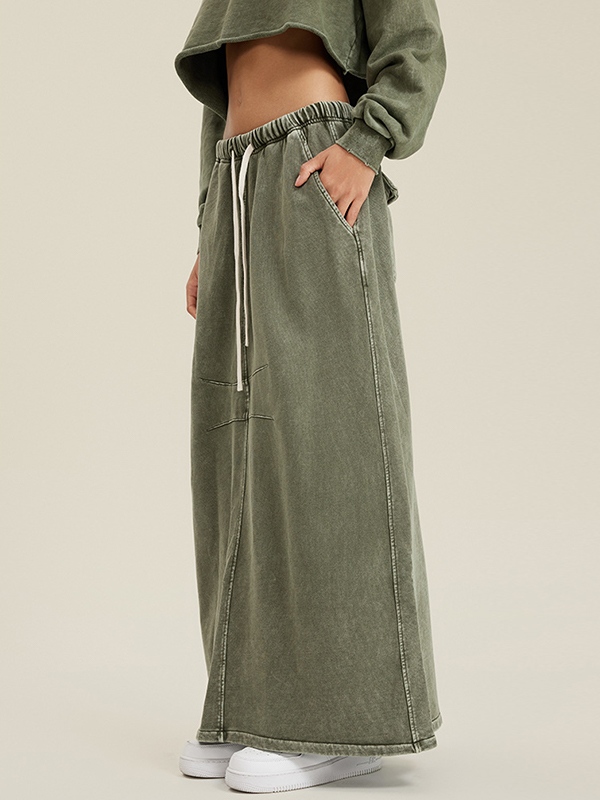 Washed Back Slit Baggy Maxi Skirt