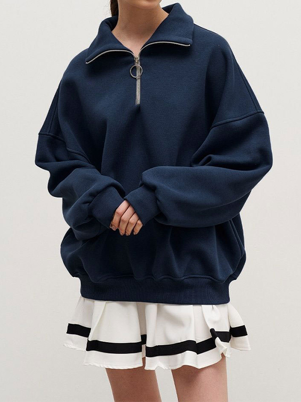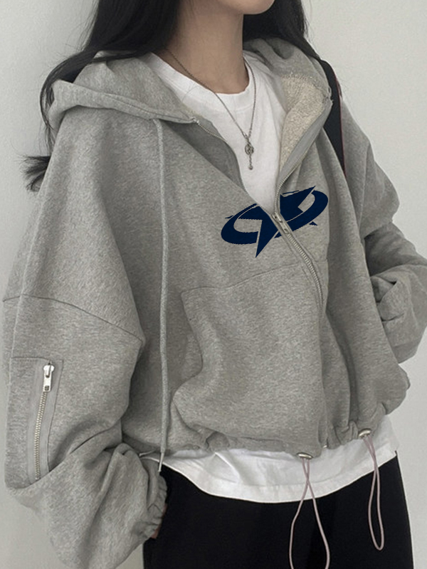 Star Print Zipper Drawstring Hem Oversized Hoodie