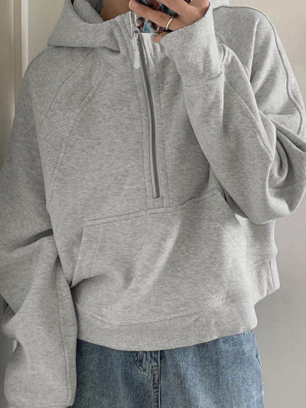 Solid Color Kangaroo Pocket Short Oversized Hoodie