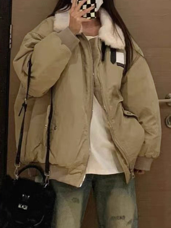 Vintage Fuzzy Collar Zip Up Jacket