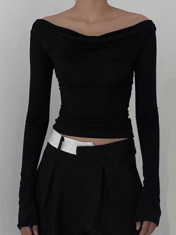 Solid Color Stacked Neck Backless Lacing Long Sleeve Tee