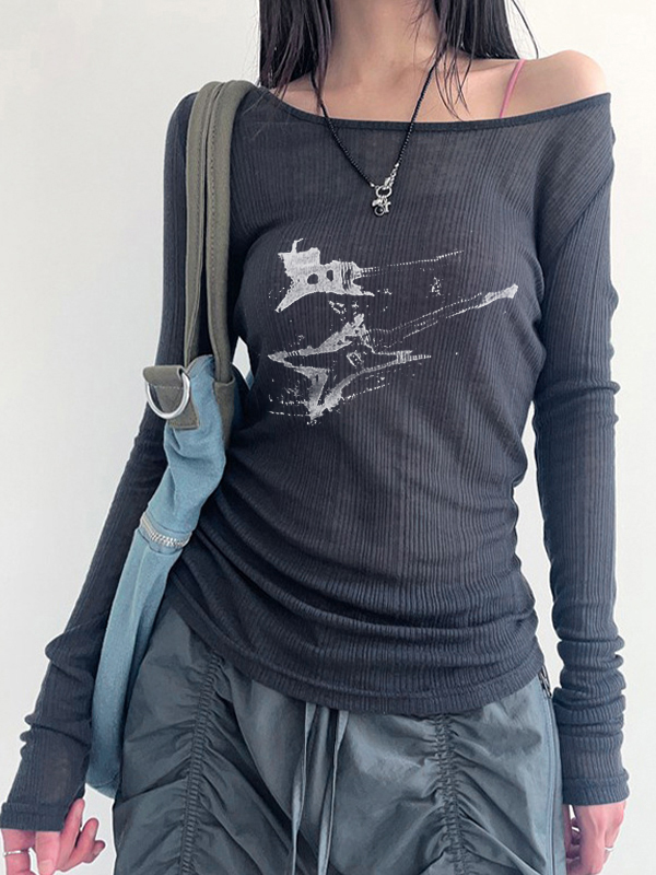 Bell Sleeve One Shoulder Floral Long Sleeve Knits