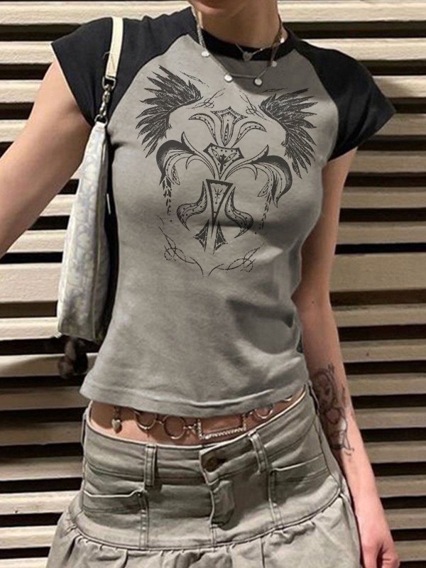 Vintage Wing Print Raglan Short Sleeve Tee