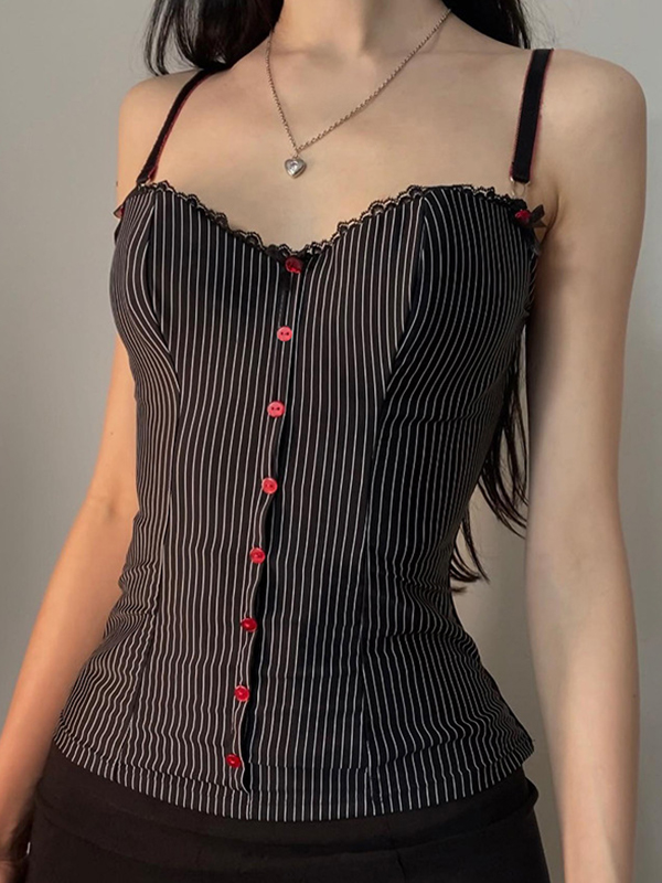 Striped Buttoned Lace Cami Top