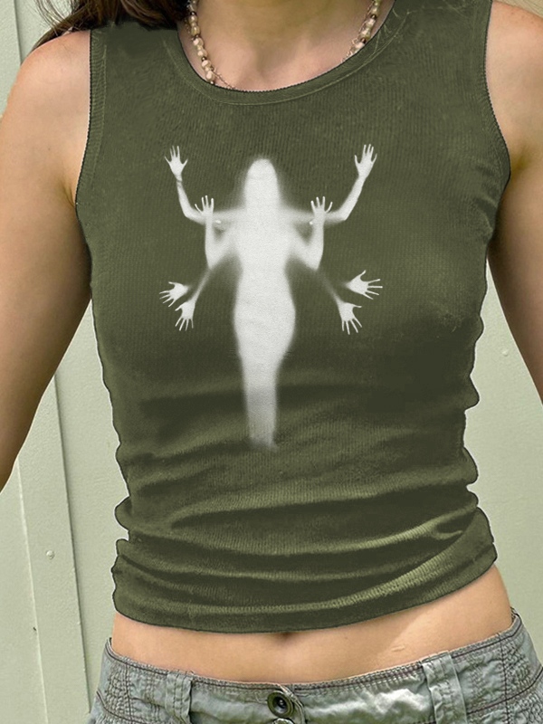 Street Shadow Print Ribbed Cropped Tank Top