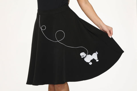 Twirl back in time with the Black Embroidered Poodle Swing Skirt by Orchid Bloom! Featuring a classic full silhouette and an irresistibly cute embroidered poodle, this skirt brings all the retro charm of a 1950s soda shop straight to your closet. Made from a soft, stretchy blend, it’s perfect for dancing the night away—or just adding a little flair to your day.