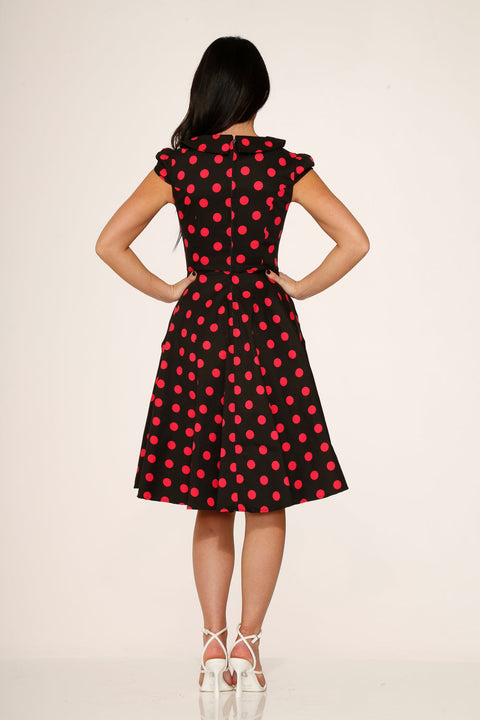 Sweet meets bold in the Black& Pink Polka Dot Swing Dress by Orchid Bloom. Featuring soft pink polka dots on a classic black backdrop, this vintage-inspired swing silhouette adds a touch of fun to any wardrobe.