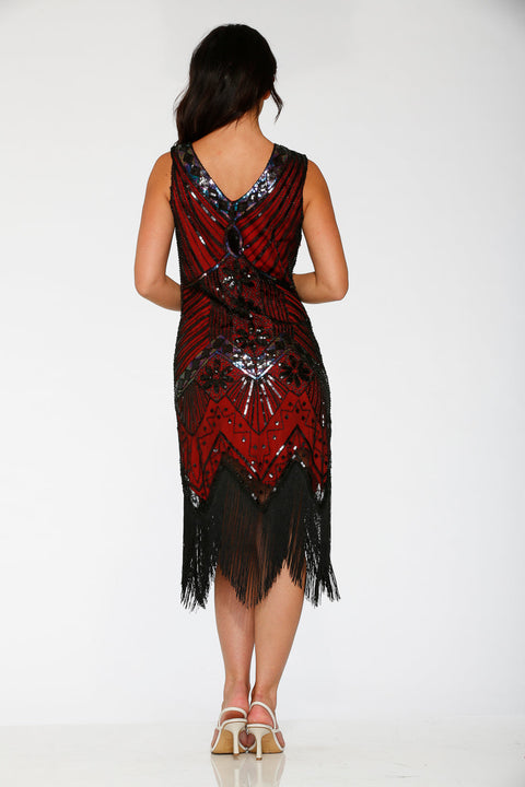 Step into the roaring ’20s with the Orchid Bloom Black Red Flapper Dress. Designed with intricate beadwork, dazzling sequins, and fringe detailing, this dress captures true vintage glamour. Perfect for themed parties, cocktail evenings, or holiday events, it’s a statement piece that’s as fun as it is chic.