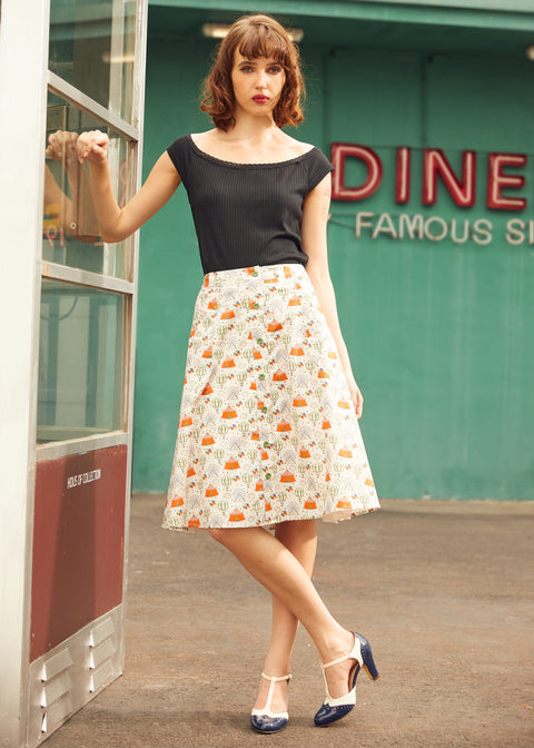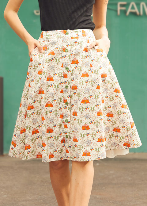 Take your look to new heights with The Daydream Departure Skirt, a sky-high cutie from our ModCloth namesake label. Made from breathable cotton with a soft viscose lining, this button-front A-line features a charming hot air balloon print that’s ready for sunny strolls and whimsical wanderings.