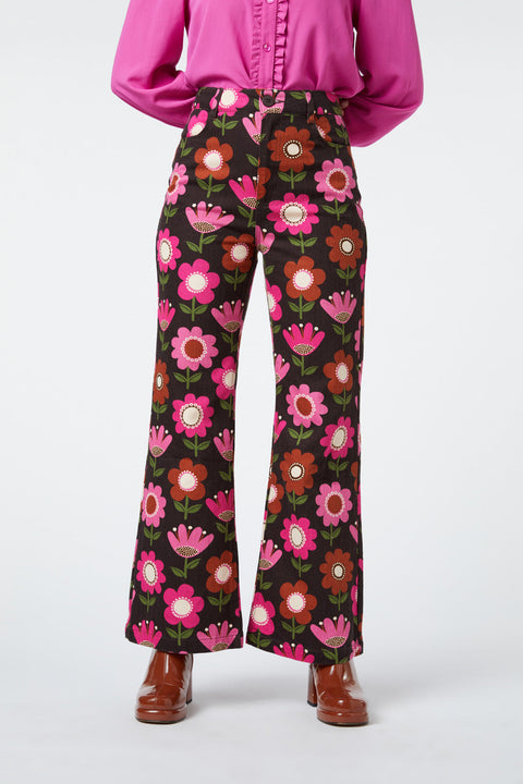 Retro flower printed jeans
