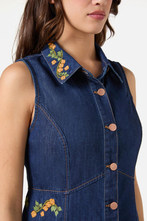 Say hello to your new denim daydream. The Flower Child Embroidered Dress brings a groovy ‘70s spirit to a modern mini silhouette, with sweet retro florals stitched onto classic cotton denim. It’s the perfect throw-on-and-go piece for carefree days and laid-back layering.