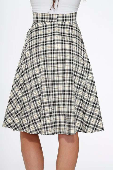 Classic meets playful in the Orchid Bloom Off-White Plaid Swing Skirt. With its soft neutral tones and breezy flared silhouette, this plaid cutie brings vintage charm to any outfit. Crafted from a comfy cotton-blend fabric with a hint of stretch, it’s made for twirling through your day in effortless style.