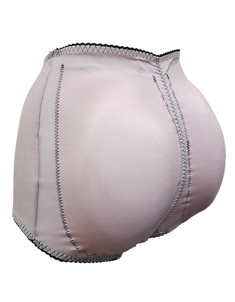 These padded panties with tummy control are made of silky smooth fabric made of 85% nylon, 15% Invista Lycra affords light control and a smooth look without panty lines.