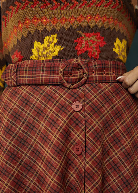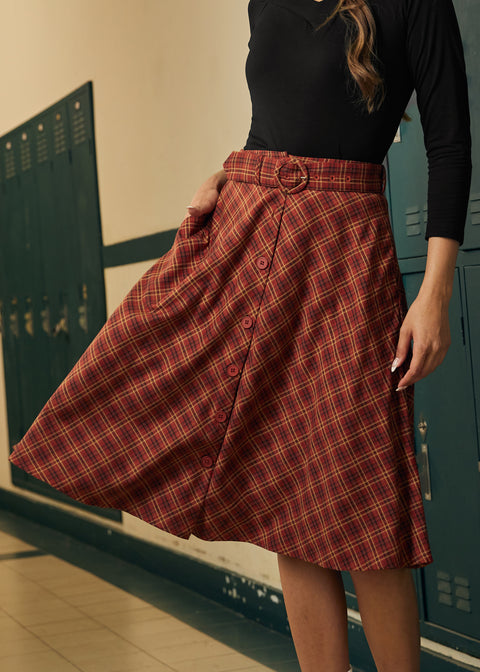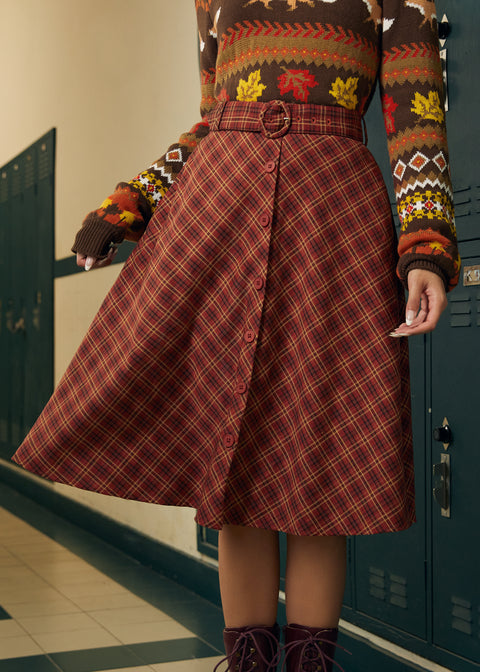 Spin into vintage-inspired charm with theRound of Applause Skirt from our ModCloth namesake label. Designed in a flattering midi length, this skirt features a full silhouette, side pockets, and a button-front detail that adds classic appeal. A matching belt with a round buckle cinches the waist, while the cozy plaid pattern in warm rust tones brings autumn vibes to every twirl.