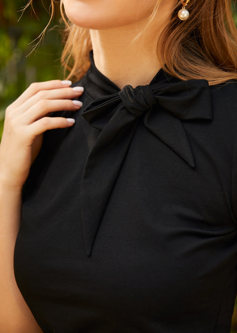 Radiating with 1950s style, this black tie-neck top from ModCloth namesake label is a must-have for completing your retro-chic summer style. So go ahead and do the hand jive, baby! You’re no cosmetic school dropout in this short sleeve retro-chic separate that boasts a mock neck with a darling side-tie design and keyhole and button-loop closure at the back, and short puff sleeves with button-loop closure at the cuffs. Made from a soft and stretchy cotton knit, this vintage-inspired shirt is perfect for sunny days that are drifting away.