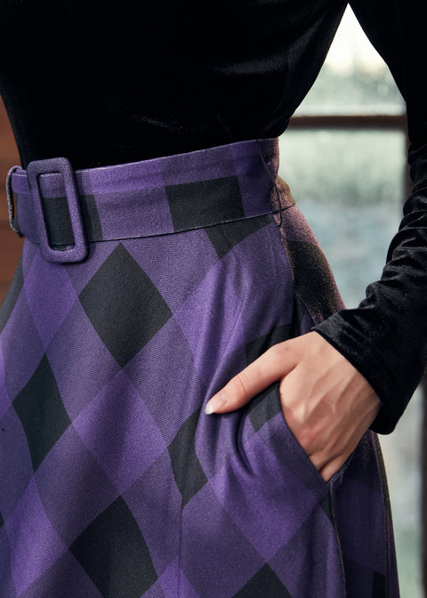 From our ModCloth namesake label comes the Twilight Serenade Midi Dress, a nostalgic ode to vintage charm with a modern twist. Clad in a rich purple check, this knit piece offers a flattering double scoop neck top and a contrasting skirt, accented with a sash waist for a defined silhouette. Medium stretch ensures comfort and flexibility, while a discreet pocket adds a functional touch. Ideal for festive gatherings or cozy winter dates, this dress guarantees a stunning entrance.