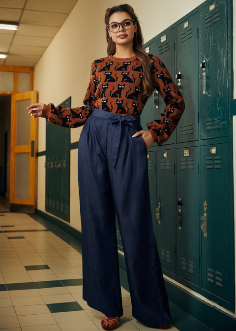 Embrace the cool breeze of spring evenings with the Twilight Whispers Wide Leg Trousers from our ModCloth namesake label. These chic trousers are crafted from a chambray fabric that offers both comfort and style. Featuring a sash waist, pleated details, and a combination of button and zipper closures for a secure fit. Versatile pockets add functionality to this elegant design, perfect for both office settings and social gatherings.