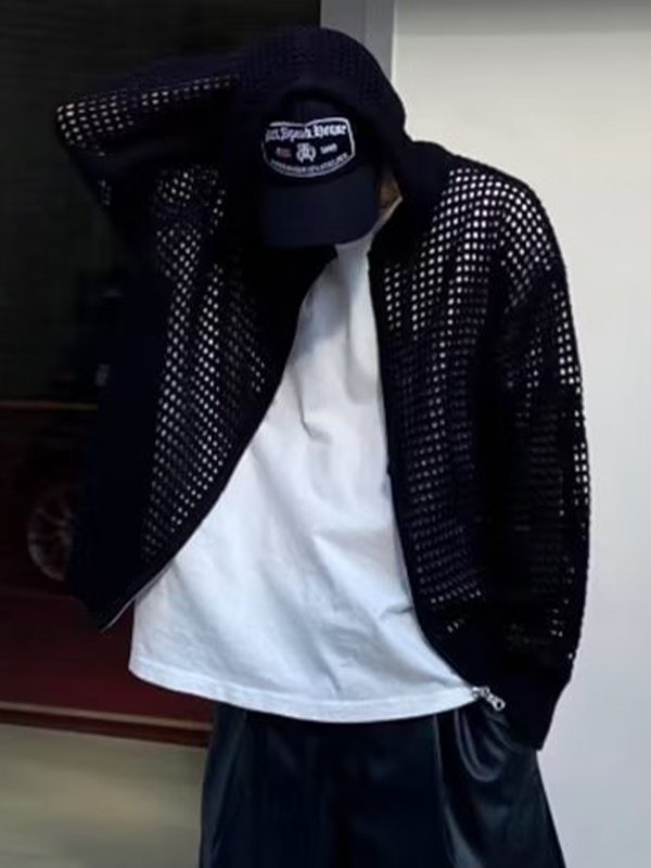 Men’s Cutout Zip Up Knit Oversized Hoodie