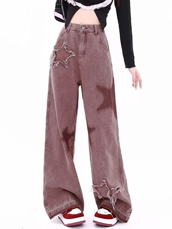 Spider Diamond High Waist Straight Leg Denim Shorts
