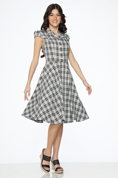 Brown&Blue Plaid Swing Dress