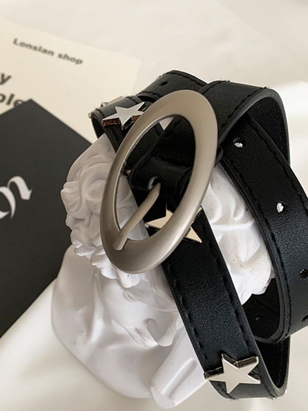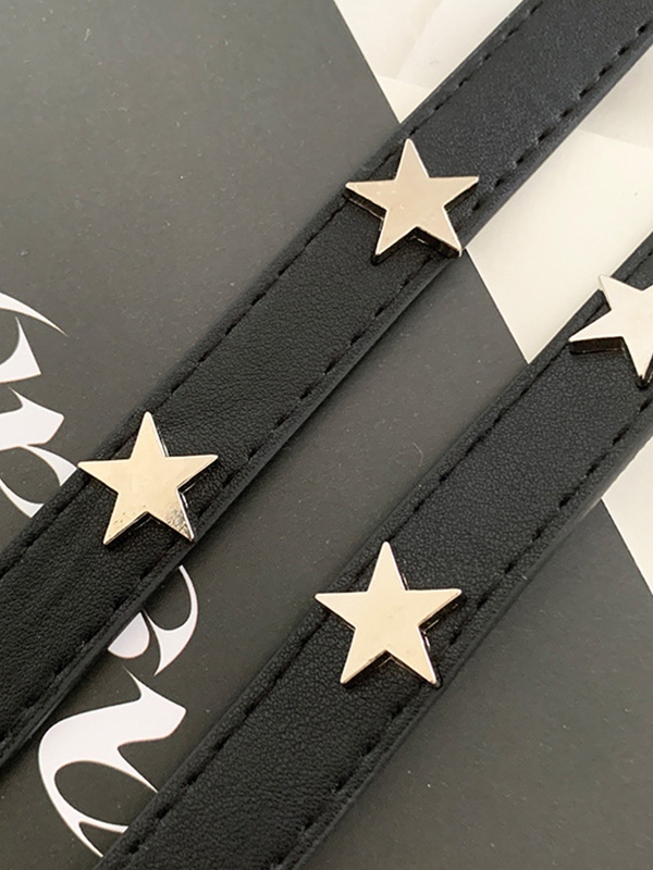 Black Star Embellished Thin Buckle Belt