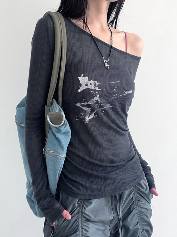 Be the first to review “Guitar Print Off Shoulder Long Sleeve Knit”