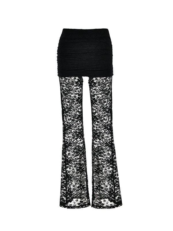 Lace Spliced Flare Leg Pants