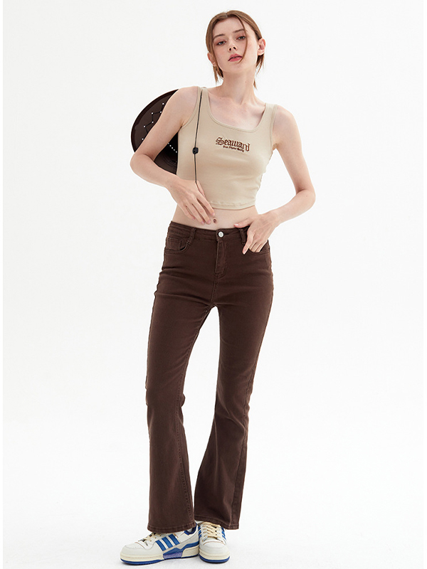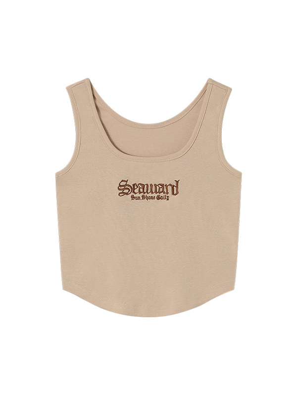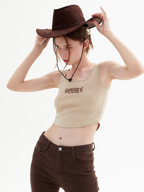 Letter Embroidery Short Style Navel Bare Tank Top