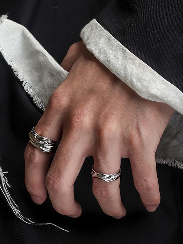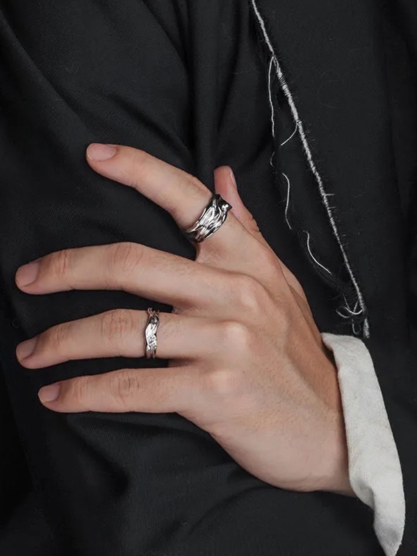 Be the first to review “Men’s 2Pcs Silver Textured Cuff Ring”