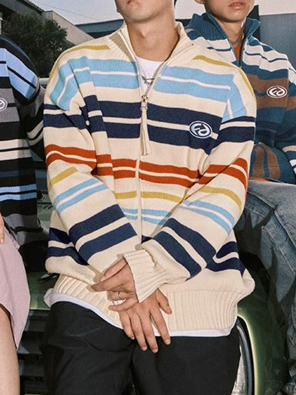 Unique Design: The cardigan features a colorful stripe splice design that adds a vibrant touch to any outfit.