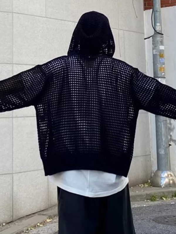 Men’s Cutout Zip Up Knit Oversized Hoodie