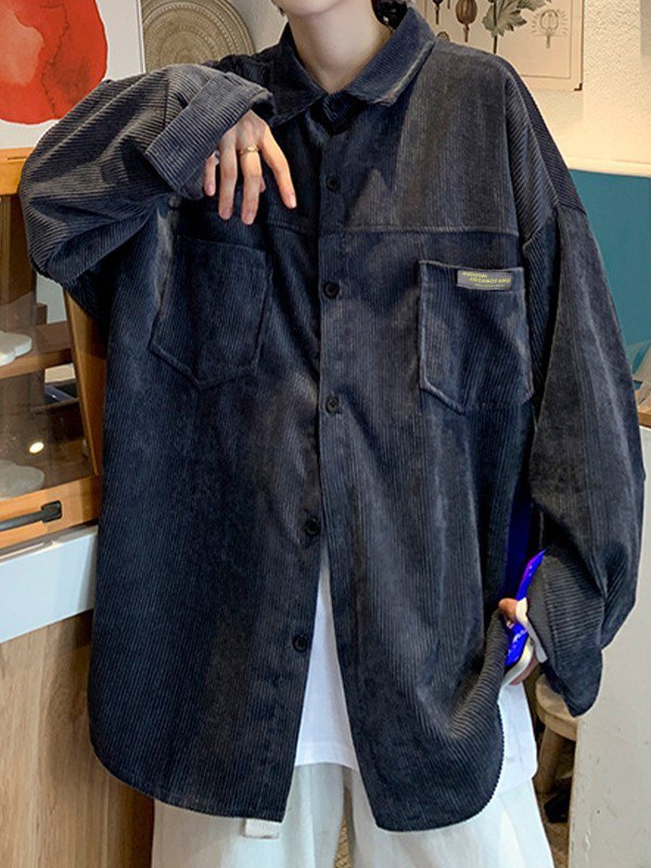 Description: Crafted from corduroy fabric, cuts to a flattering silhouette, features patched pockets to the front chest, with button closure and dropped long sleeves design.