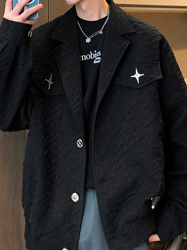 Men’s Textured Metal Star Decor Shawl Neck Jacket